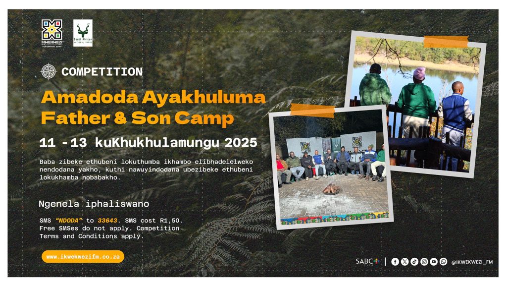 Amadoda Aya Khuluma is a station program that offers men a safe place to talk about life and its challenges. The program will be carried out in the Kruger National Park on the 11 -13 September 2025. Father, stand a chance to win yourself and the boy child you’re raising an all-expenses paid weekend away, and you, the son, put yourself in the position of taking the trip with your father. Winners will be transported by the station, and they will receive VIP treatment upon arrival in Kruger, they will see animals in the bush through game drives, and sleep comfortably and they will be a part of the dialogue that will address, amongst other topics, the scourge of GBV that will be recorded by the station. Enter the competition by SMSing “NDODA” to 33643. SMS costs R1.50.